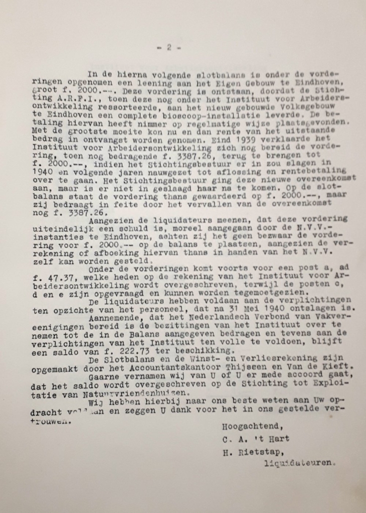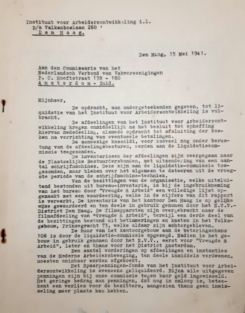 Zoals vermeld omvat het archief ook de bestuur stukken van het Instituut en de daaraan verbonden organisaties als Nederlandse Arbeiders Reisvereniging “De Natuurvrienden” (NARV), Naturfeunde International (NFI), Stichting Natuurvriendenhuizen en Stichting De Vrije Wereld. Het biedt een inzicht in de heroprichting van Instituut en Stichting Natuurvriendenhuizen; in perikelen op het centraal bureau bij sollicitaties, bestuurswisselingen en reissecretariaat; in zijn betrokkenheid bij IvAO-leden in den lande en zijn nauwgezetheid in zijn reisdeclaraties. Maar vooral biedt het inzicht in de vele discussies over de koers van het naoorlogse Instituut. Nog steeds partij- en vakbond gebonden via een gezamenlijke Scholendienst? Aansluiting bij het niet-religieus gebonden Humanistisch Verbond?  Of toch, waar Kees de Boer al in de dertiger jaren over nadacht een Culturele Organisatie met een eigen sociaal-cultureel sociaaldemocratisch gezicht, en waar hij in de vijftiger jaren een vervolg aan wilde geven. Dit laatste was al verwoord in 1944 in de nota “De Culturele Taak van de moderne socialistische beweging”; verbonden aan de ideologisch verwante socialistische organisaties, met de mogelijkheid om daarbij via de Stichting Natuurvriendenhuizen de eigen natuurvriendenhuizen te benutten.